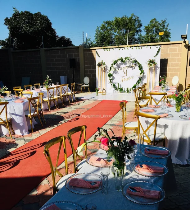 Astoundingly, investing solely in chic seating instantly transforms any venue into an upscale event space. Renting stylish gold X-back chairs provides a luxurious visual anchor that minimizes the need for extravagant floral arrangements.