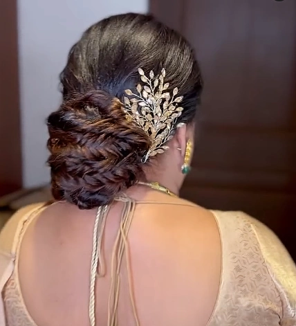 Strikingly, a large crystal leaf accessory anchors the style and adds immediate formality. Pairing this look with a traditional saree or evening gown creates a regal silhouette. You can celebrate confidently knowing this structured design stays firmly in place all night.