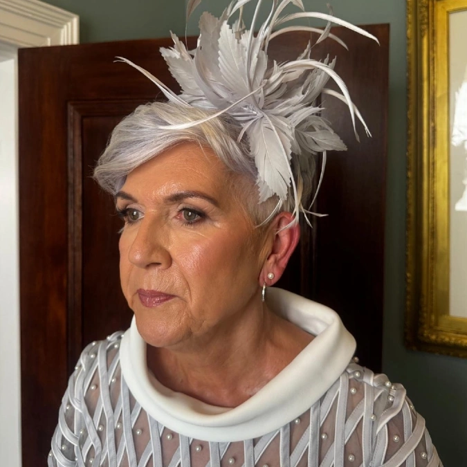 10. Chic Silver Pixie with Fascinator